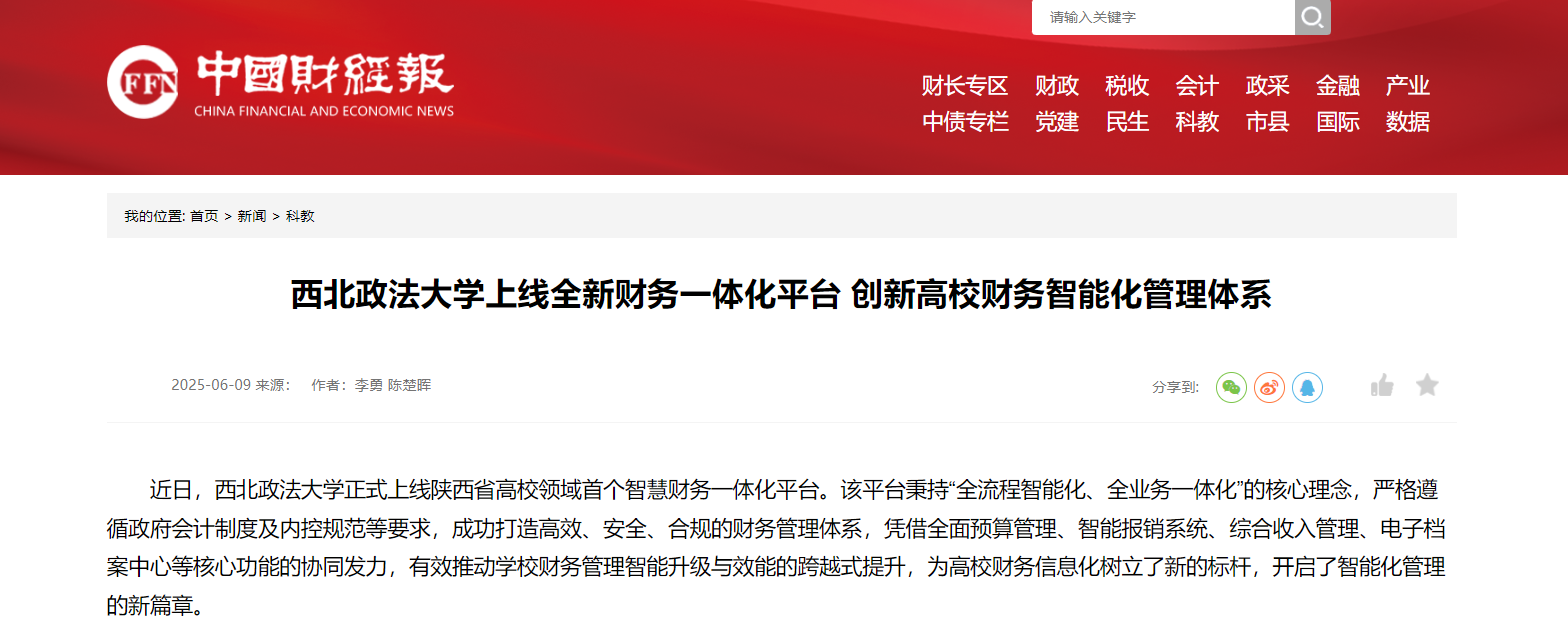 【中国财经报】beat365游戏平台上线全新财务一体化平台 创新高校财务智能化管理体系