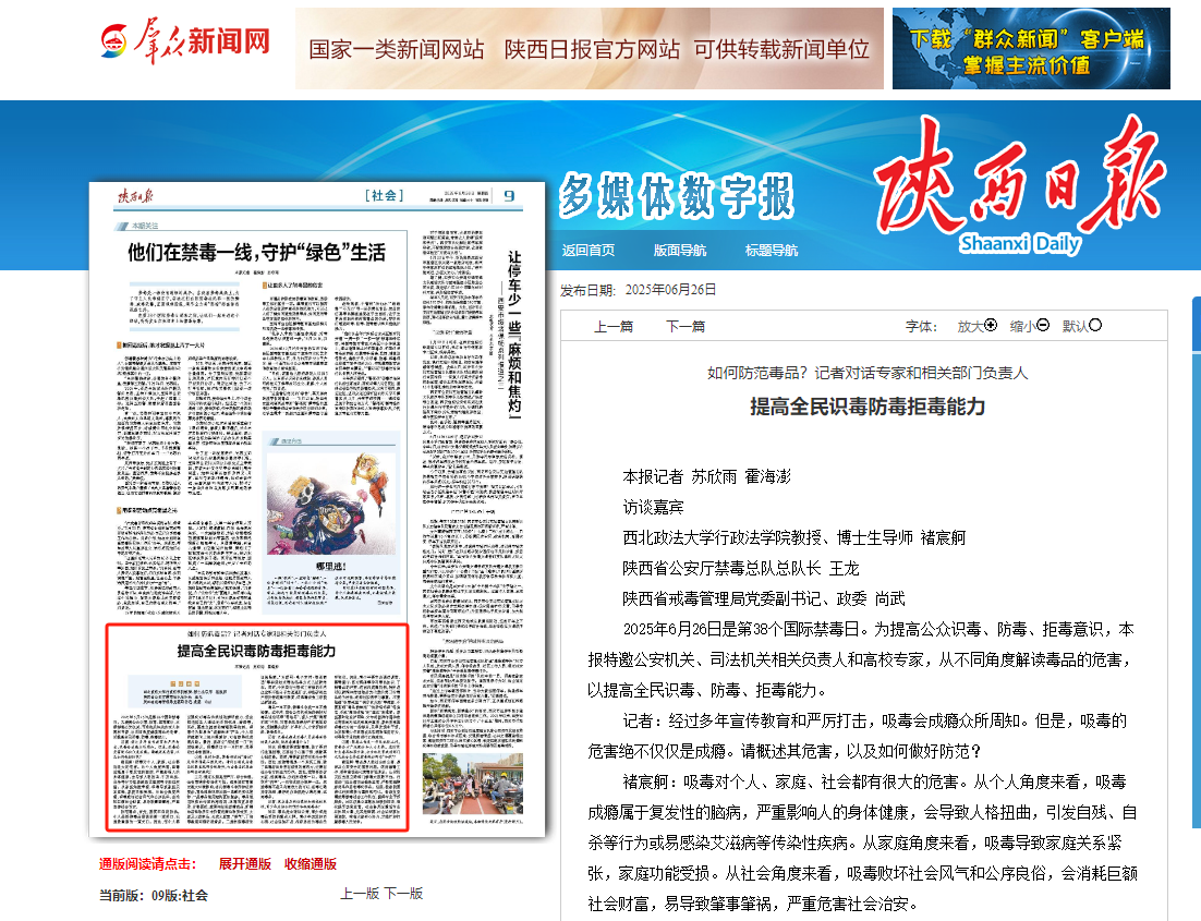 【陕西日报】如何防范毒品?记者对话专家和相关部门负责人提高全民识毒防毒拒毒能力