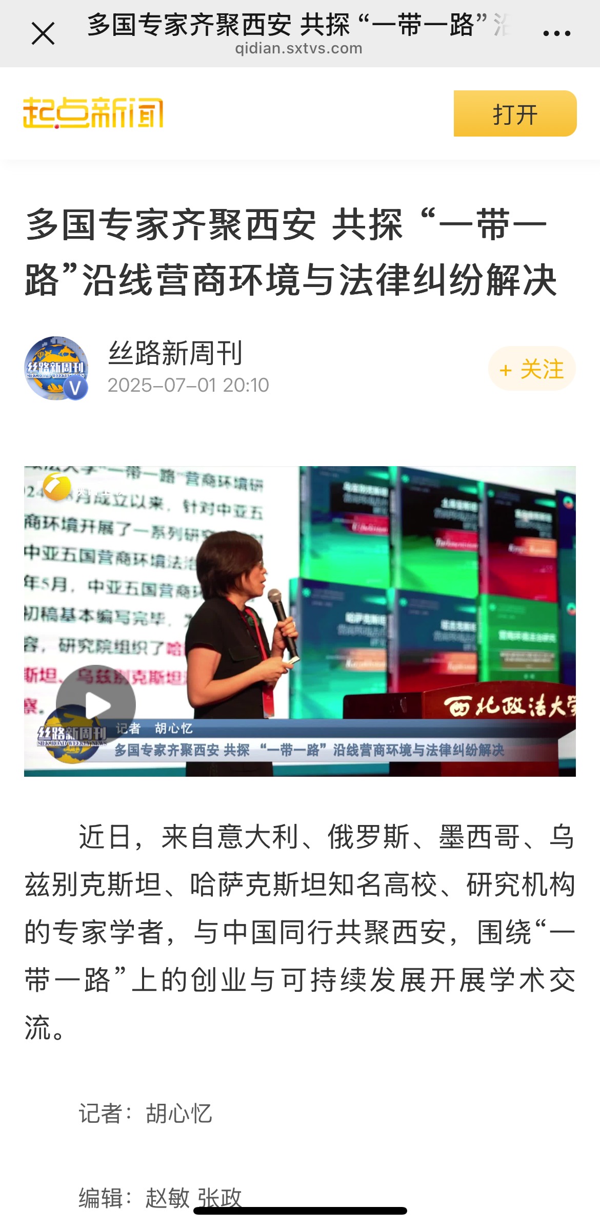 【丝路新周刊】多国专家齐聚西安 共探 “一带一路”沿线营商环境与法律纠纷解决