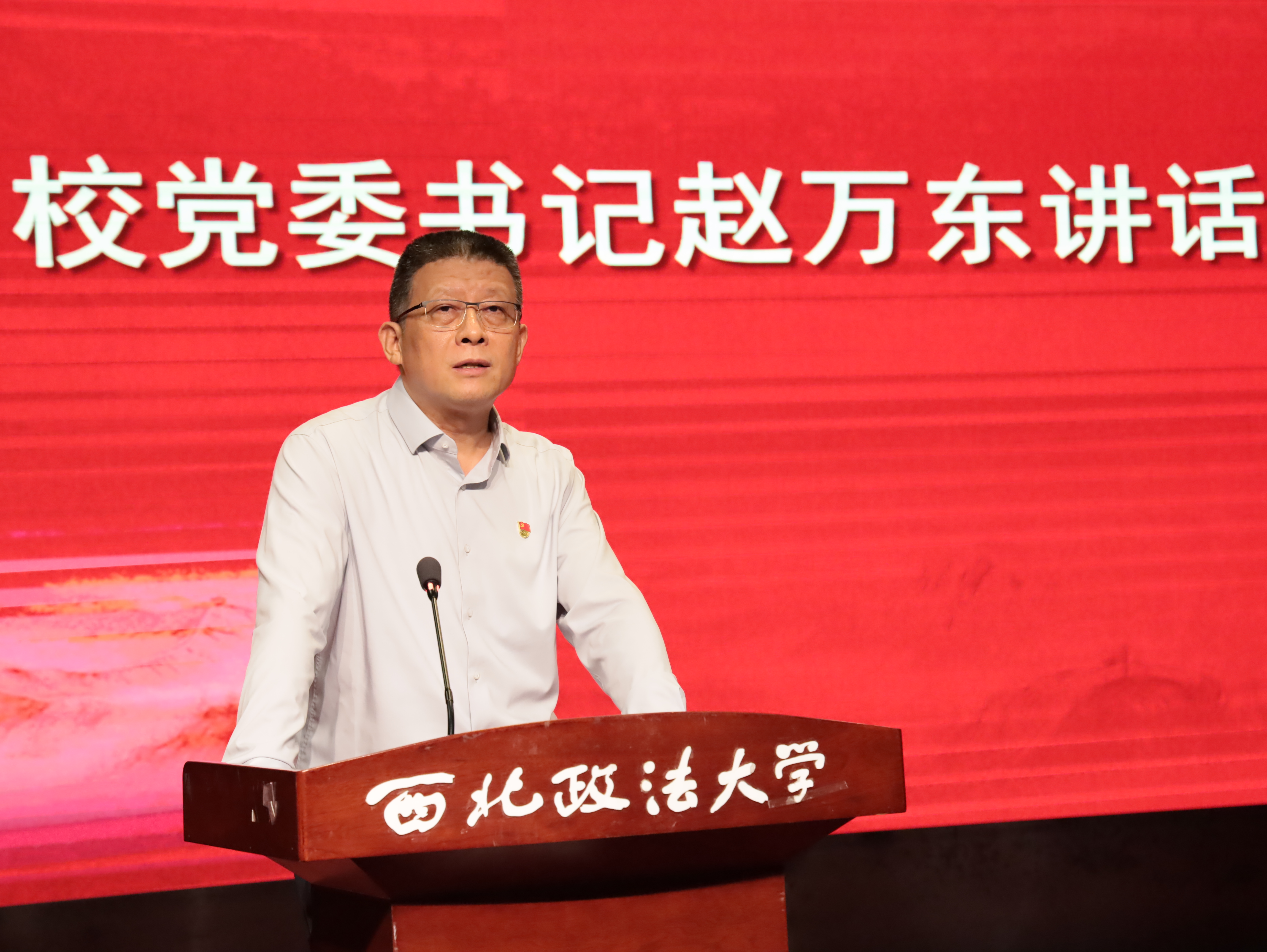 赵万东在讲话中代表学校党委向受表彰的先进集体和优秀个人表示祝贺,向“光荣在党50年”的老党员和所有为学校事业发展做出积极贡献的广大党员、师生及离退休教职工致以崇高敬意!赵万东强调,学校正处于发展的关键时期,内涵建设与外延建设的任务繁重,全校上下要牢牢把握教育的政治属性、人民属性、战略属性,应变局、育先机、开新局,不断增强基层党组织的政治功能和组织功能,使学校始终成为坚持党的全面领导的坚强阵地。要压紧压实全面从严治党主体责任,锲而不舍落实中央八项规定精神,从严从实加强干部队伍建设,持续深化基层党组织标准化规范化建设,促进基层党组织全面进步、全面过硬。要在实干中锤炼过硬作风,把“立说立行”内化为行动自觉,坚持能者上、优者奖、庸者下、劣者汰的鲜明导向,着力锻造政治过硬、堪当重任的干部队伍,积极营造敢于负责担当、争相干事创业的浓厚氛围。要充分发挥党组织战斗堡垒和党员先锋模范作用,强化责任担当,增强行动自觉,形成工作合力,推动党建和业务深度融合,不断增强基层党组织的创造力、凝聚力、战斗力,以高质量党建引领学校事业高质量发展,奋力书写“教育强国,西法大何为”的时代答卷。