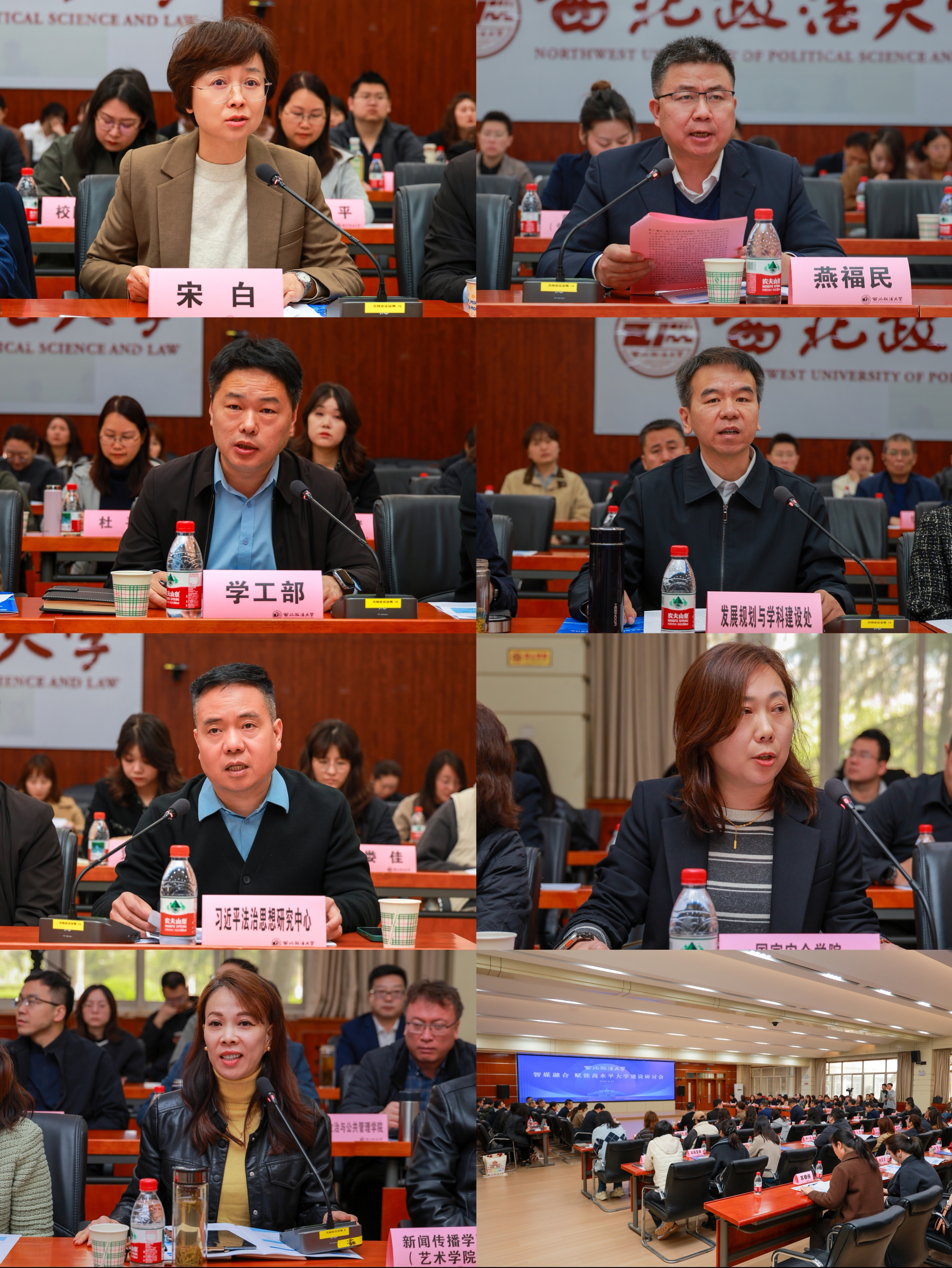 校党委委员、党委宣传部部长宋白作学校宣传思想文化工作报告。学校招生就业处、党委学工部、发展规划与学科建设处、习近平法治思想研究中心、国家安全学院(反恐怖主义法学院)、新闻传播学院(艺术学院)负责人作交流发言,介绍我校在招生就业、学生工作、学科建设、习近平法治思想“三进”、国家安全教育、新闻传播实践等领域的特色成果、育人成效和宣传亮点。
