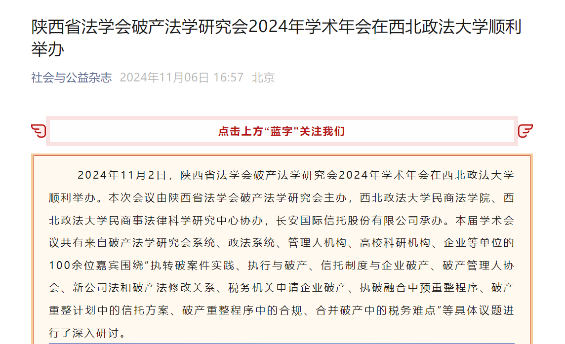 【社会与公益杂志】陕西省法学会破产法学研究会2024年学术年会在beat365游戏平台顺利举办https://mp.weixin.qq.com/s/2mhbQEZlqGDNO-9W-upkDQ