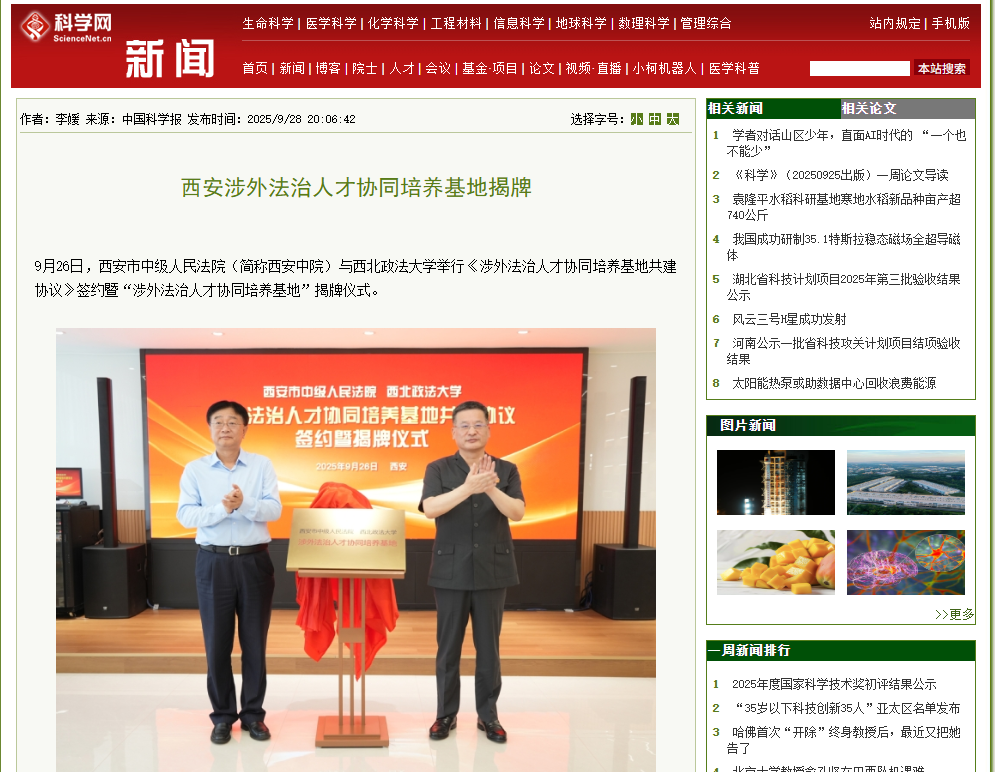 【科学网】西安涉外法治人才协同培养基地揭牌 https://news.sciencenet.cn/htmlnews/2025/9/552415.shtm