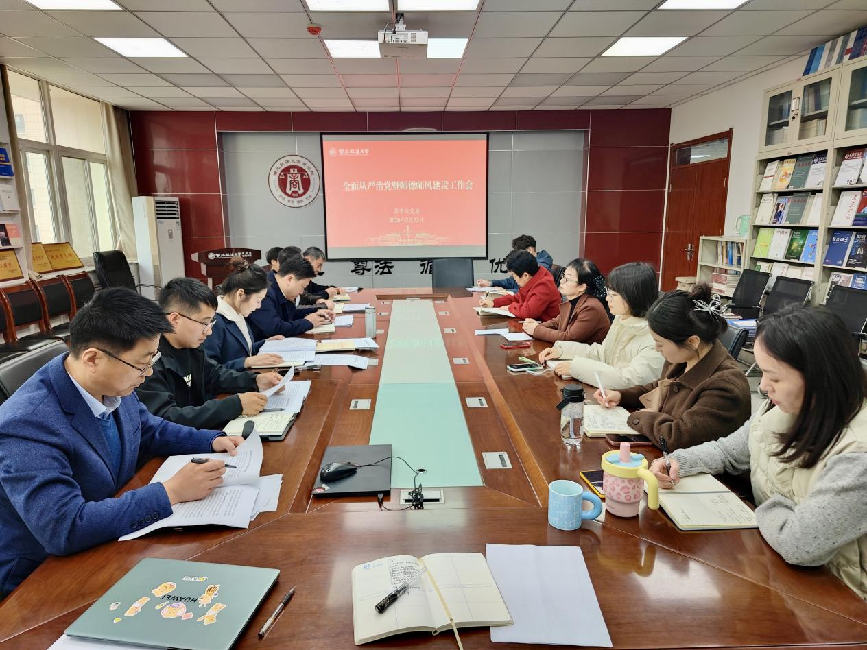 3月23日,商学院党委召开全面从严治党暨师德师风建设工作会,学院领导班子、行政人员、学工干部、各支部书记参加会议。